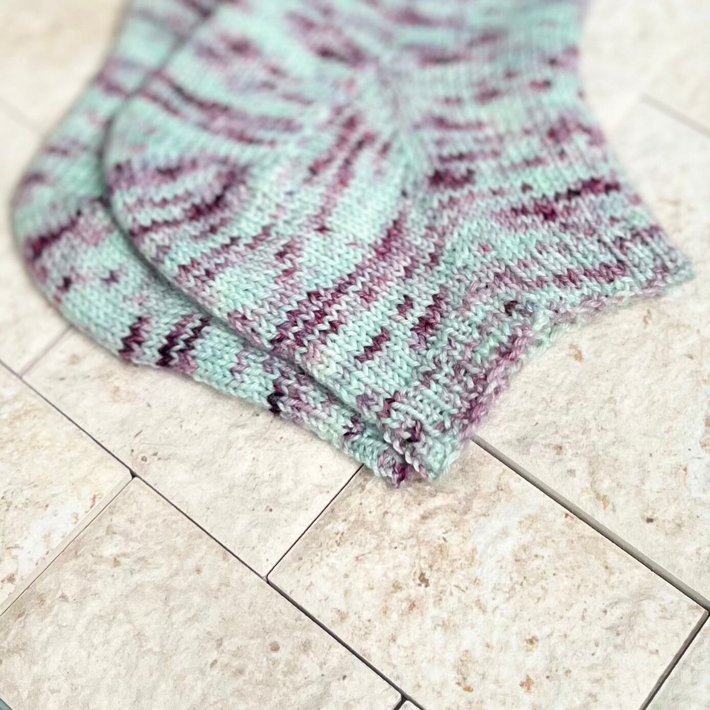 メリノウール100%靴下用の糸で編んだ手編みのかかと靴下になります。