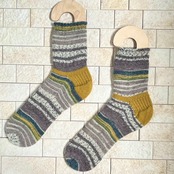 【新色】柄がかわいいくつした(26.0cm〜27.0cm)[マスタードイエロー]ソックス 温活 ルームソックス 手編み