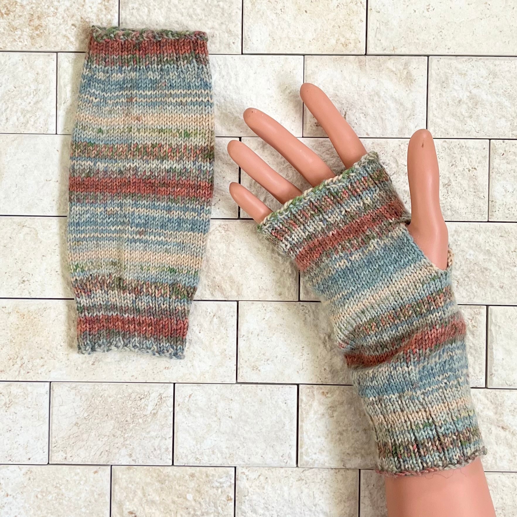 【新色】袖口から柄が…ハンドウォーマー[ベージュミックス]アームウォーマー 指なし手袋 温活 手編み