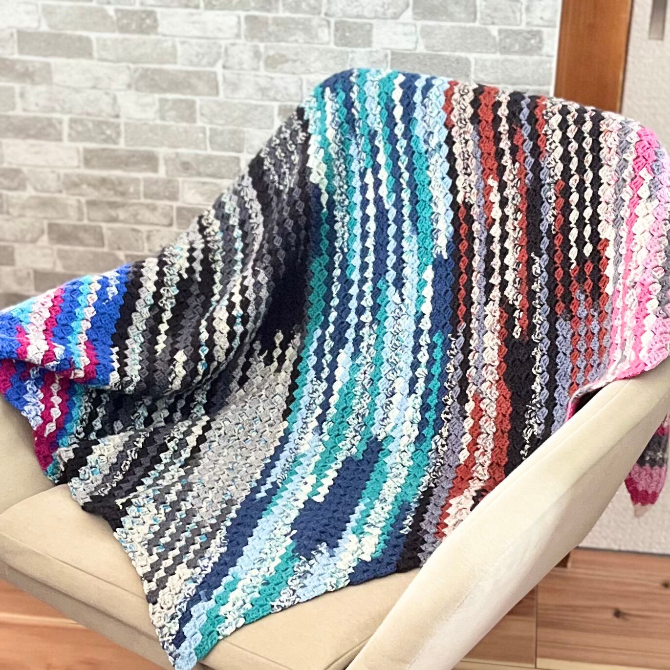 かぎ針で模様を編んだブランケットです。