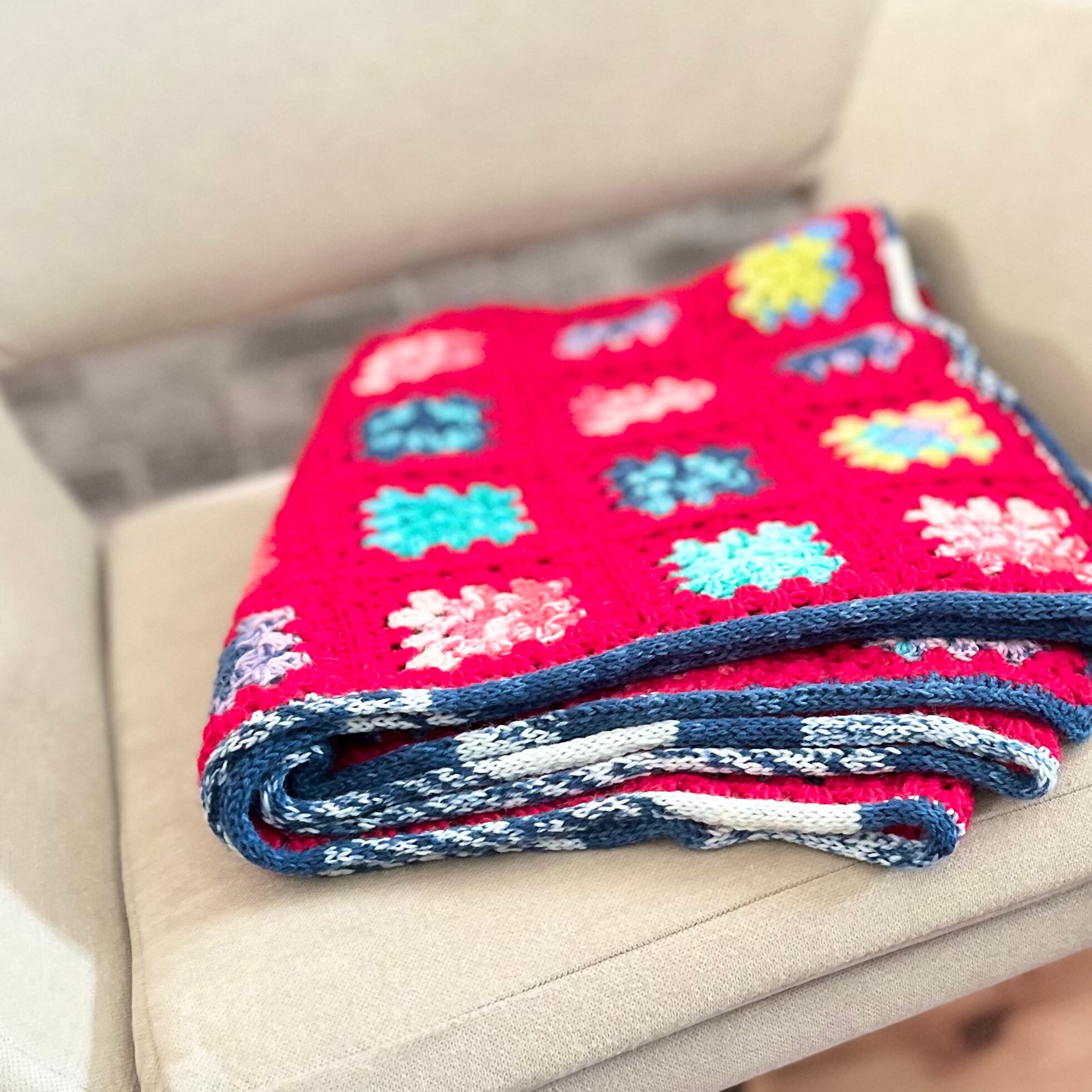 【送料無料】retoroモチーフブランケット[レッド]膝掛け グラニースクエア ソファーカバー 温活